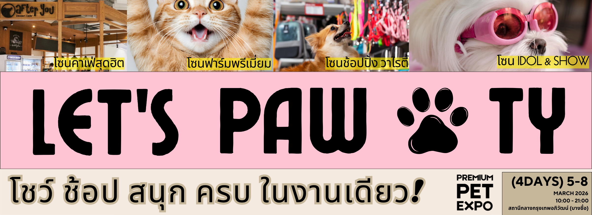 ศิลปิน T-POP และ INFLUENCER IDOL สัตว์เลี้ยง พร้อมกิจกรรมที่เป็น HIGHLIGHT รวมถึงคาเฟ่สุดฮิต รวมครบอยู่ในงาน